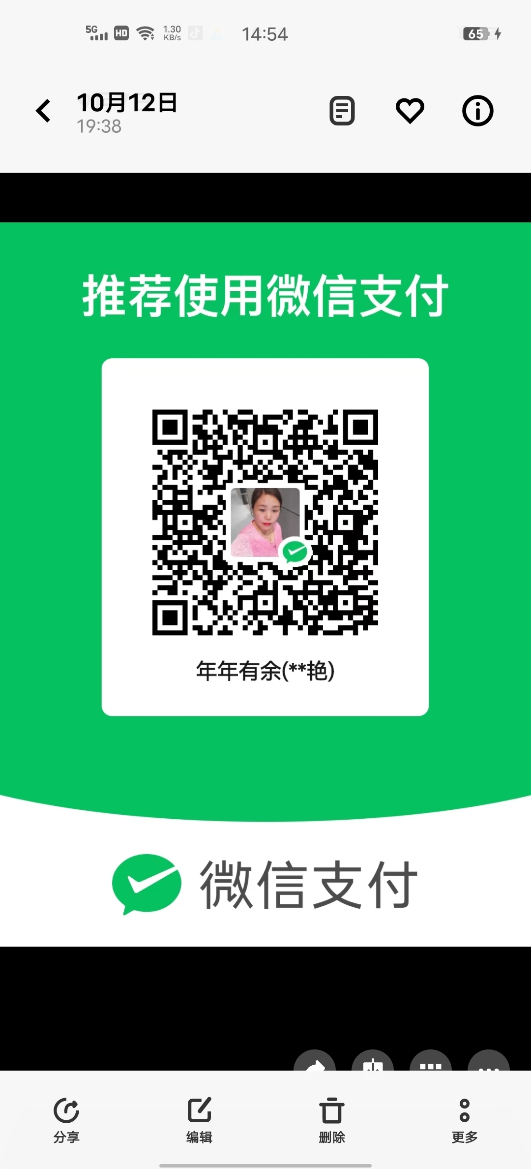 | 665378 | โ ๆๅ | ไธไผ ๆๅ (็ฑปๅ: qq_pay) โ qq_or_friend/ | ๆฅ็ๅพ็ #216918 | 2025-11-17 20:14:34 | |